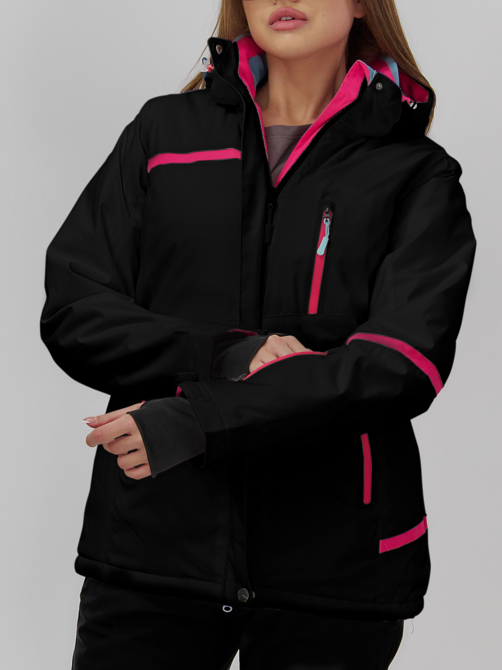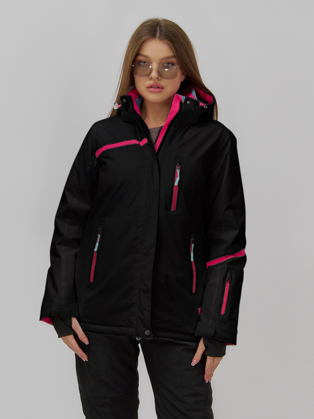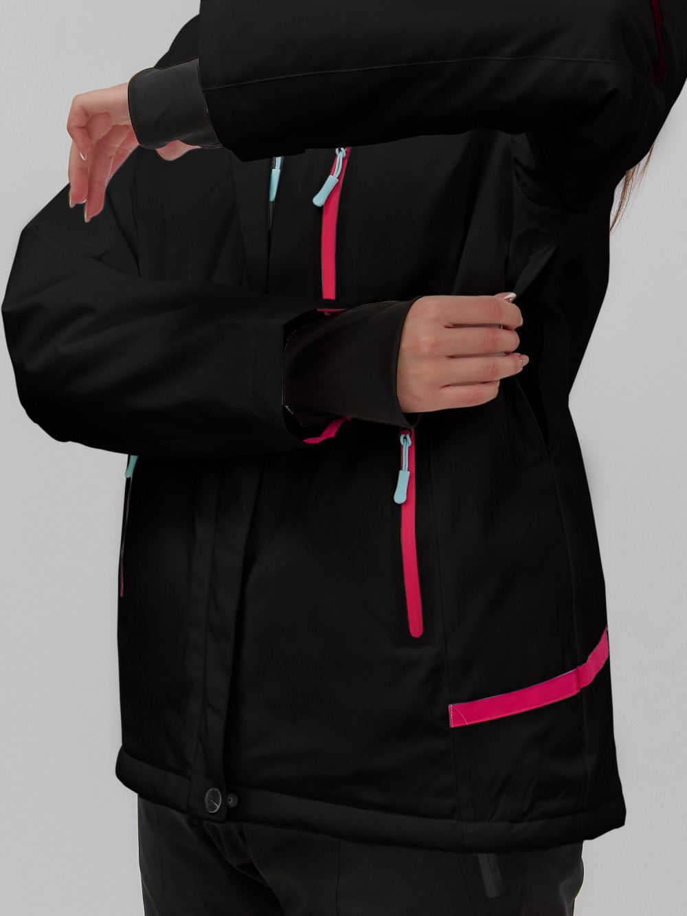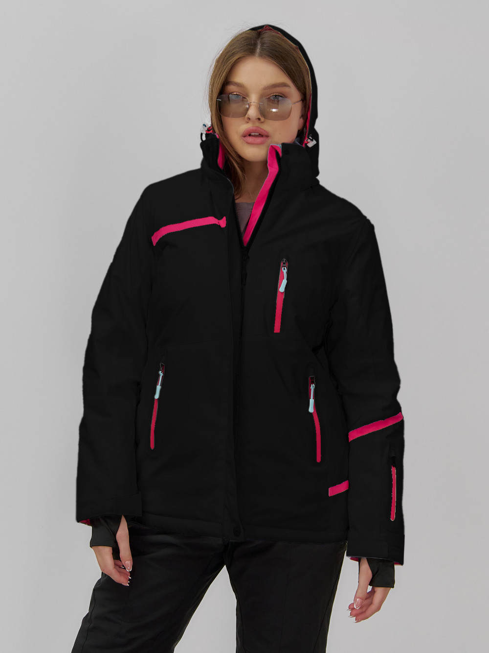 Горнолыжная куртка женская зимняя черного цвета 7091Ch