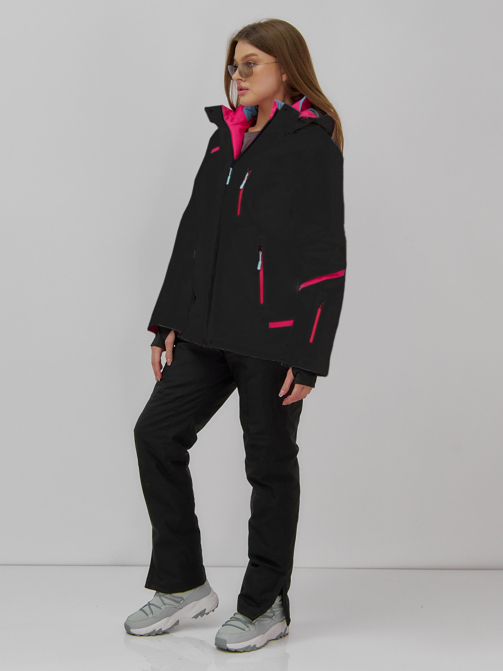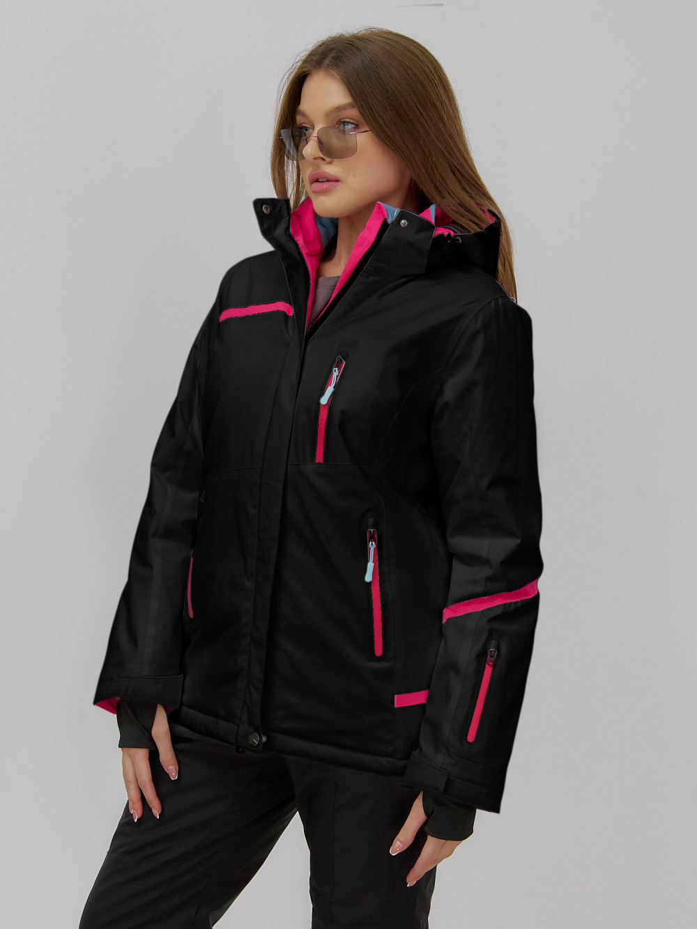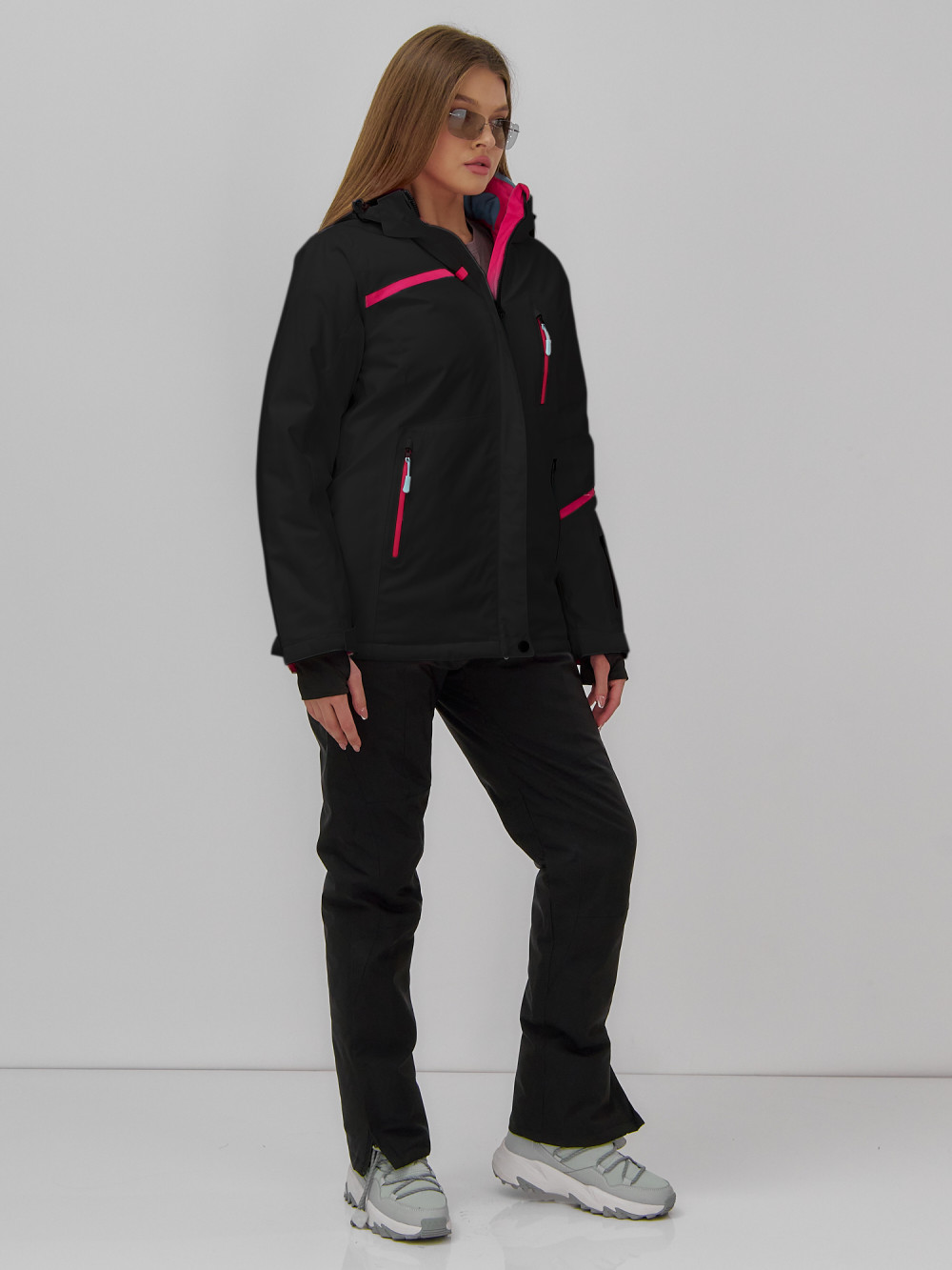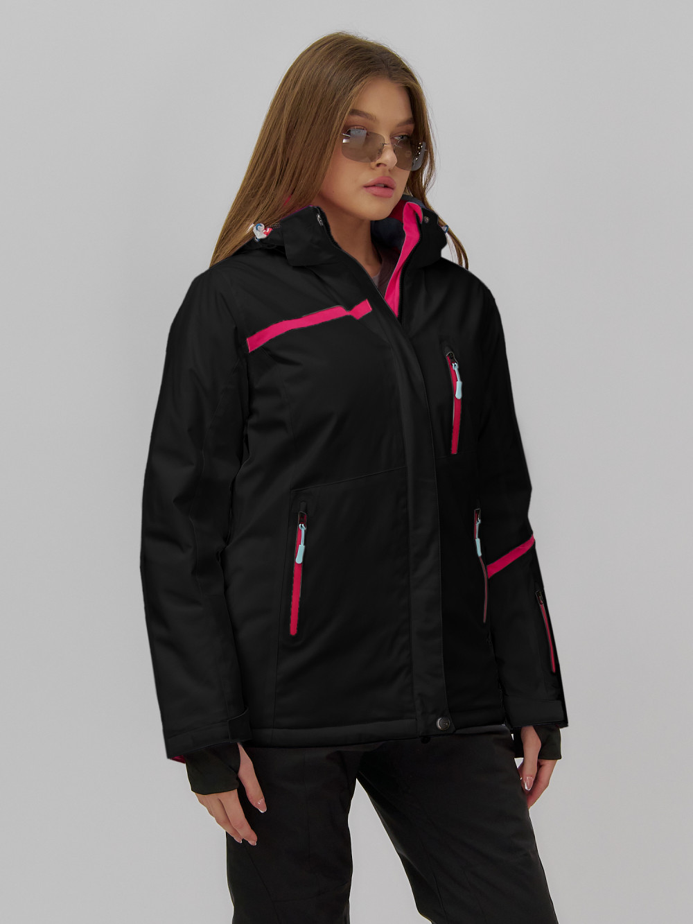 Горнолыжная куртка женская зимняя черного цвета 7091Ch