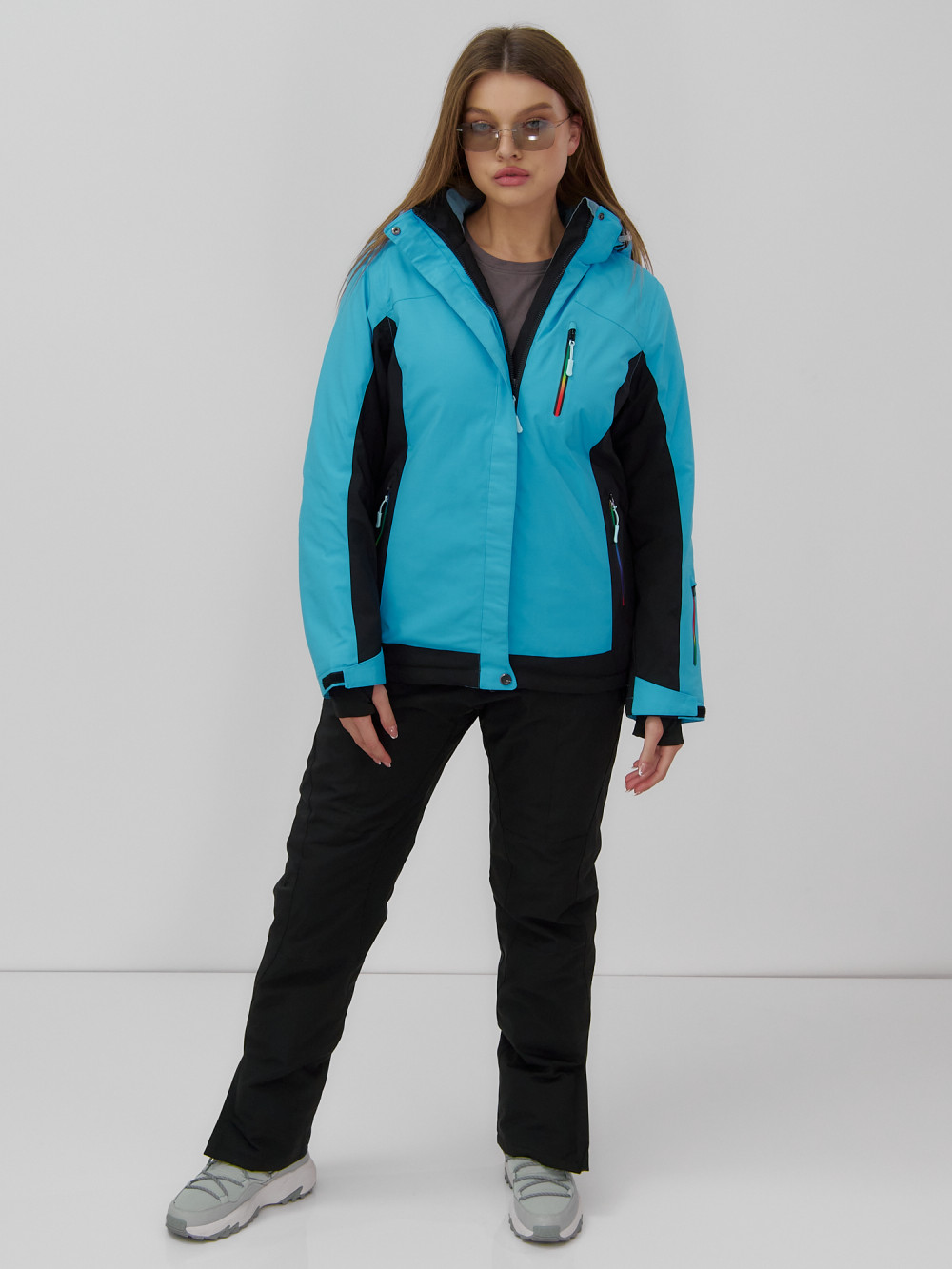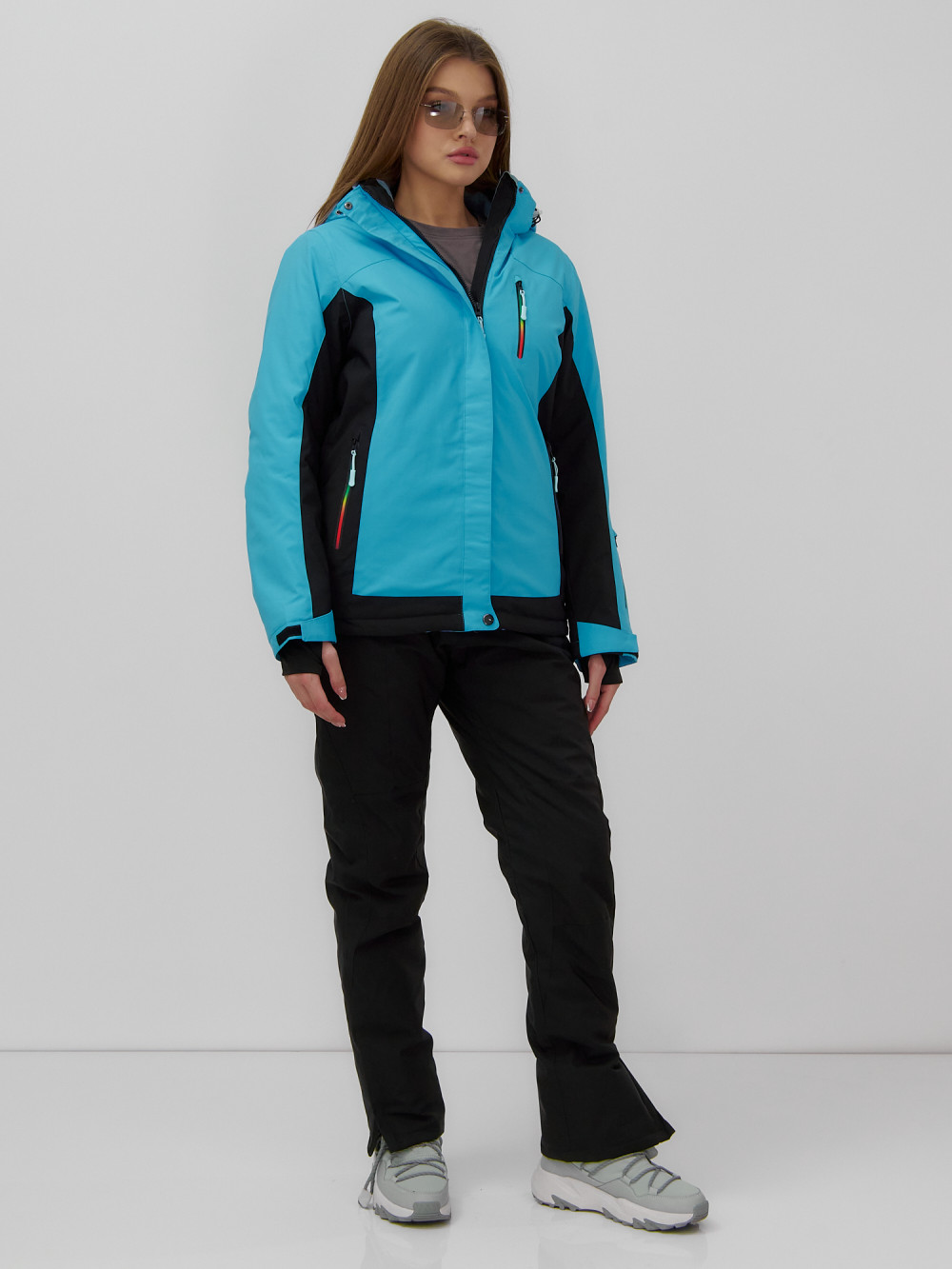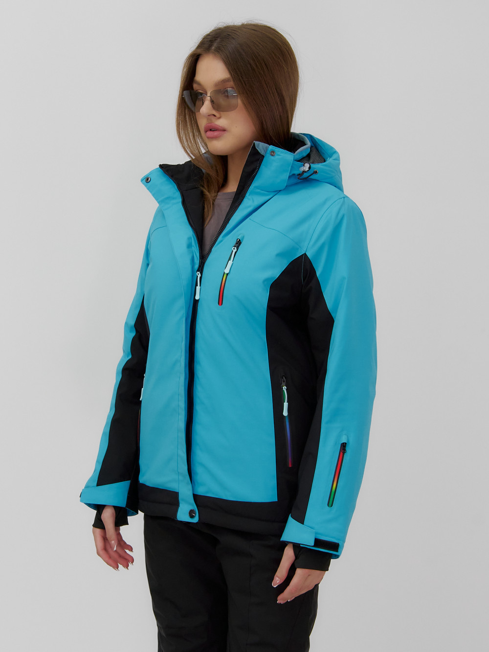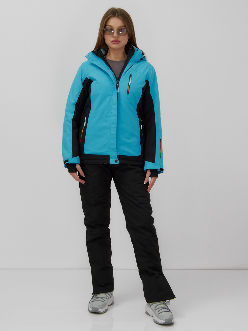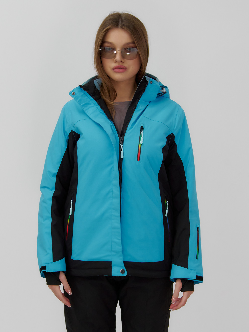 Горнолыжная куртка женская зимняя синего цвета 027S