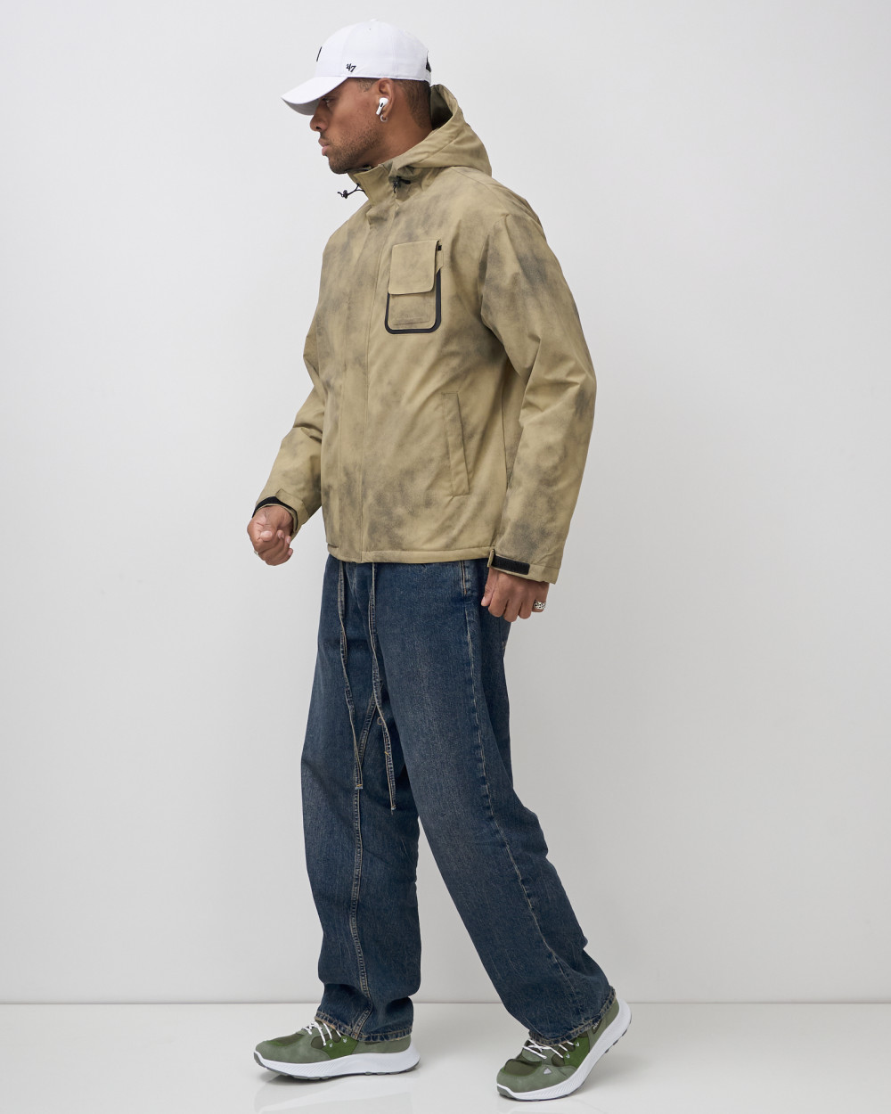 Куртка спортивная мужская весна осень бежевого цвета 25473B