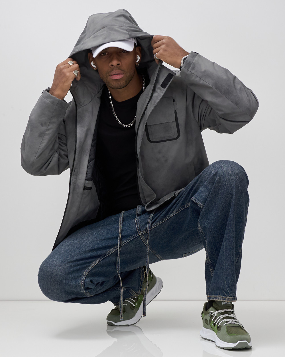 — Декоративные элементы: Молния, капюшон, карманы и прозрачные вставки – стильные акценты, которые делают образ завершенным.