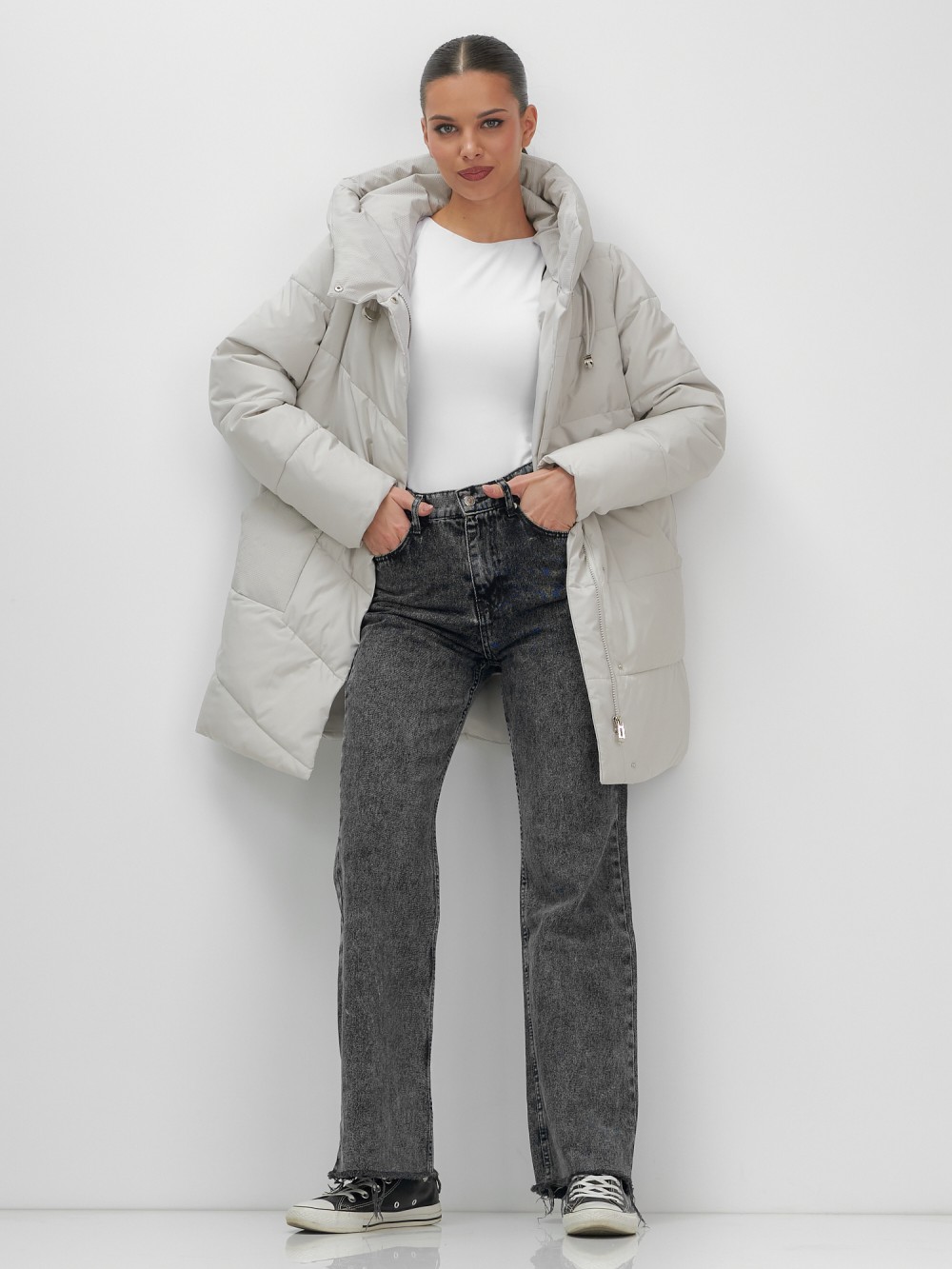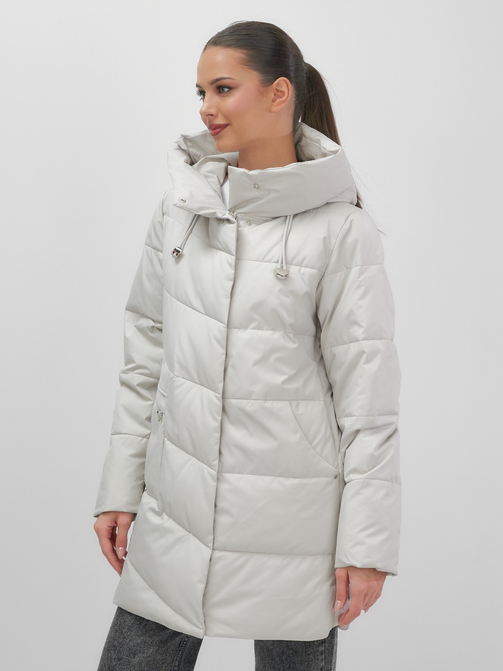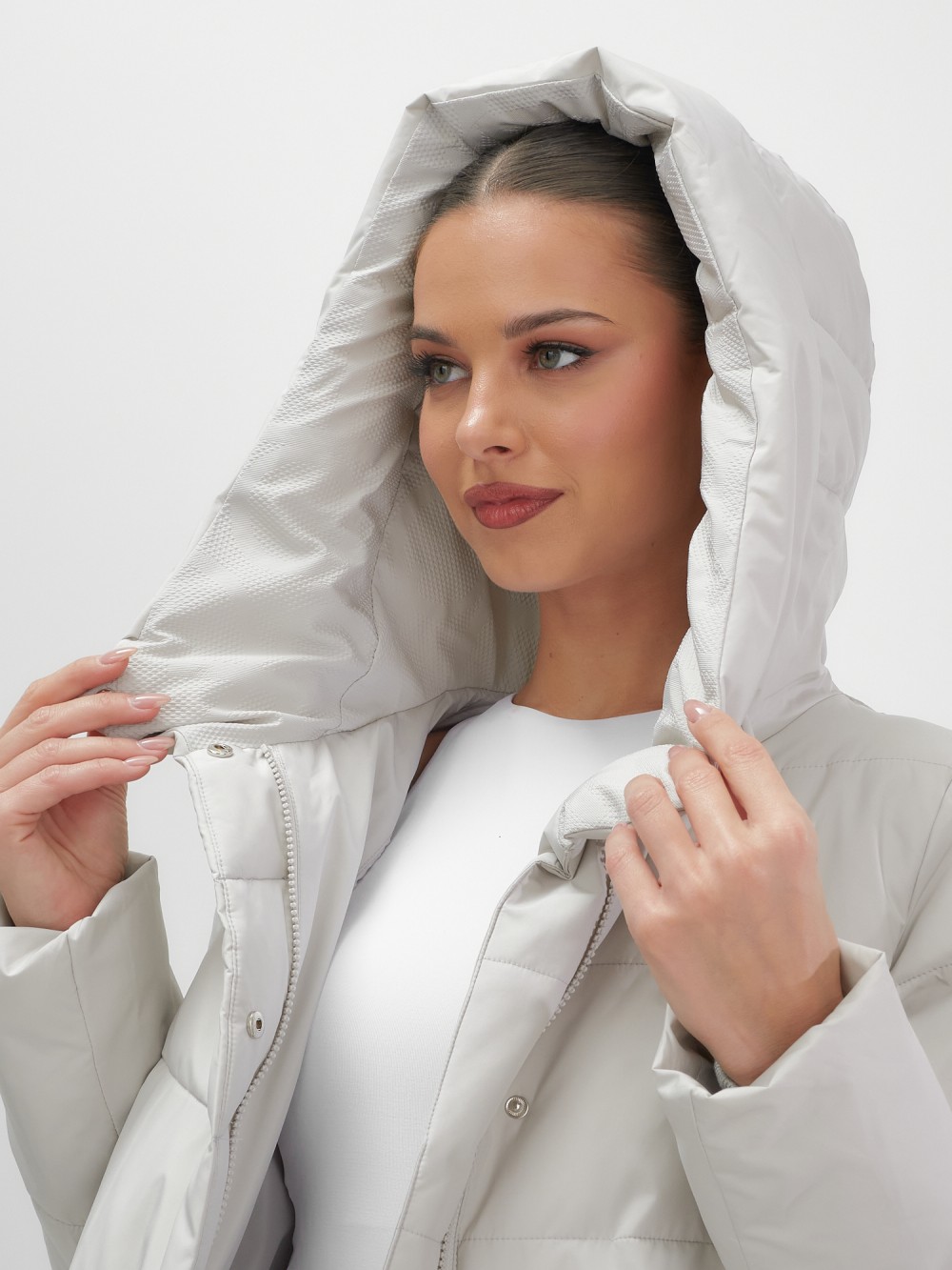 Куртка женская демисезонная с капюшоном серого цвета 1139Sr