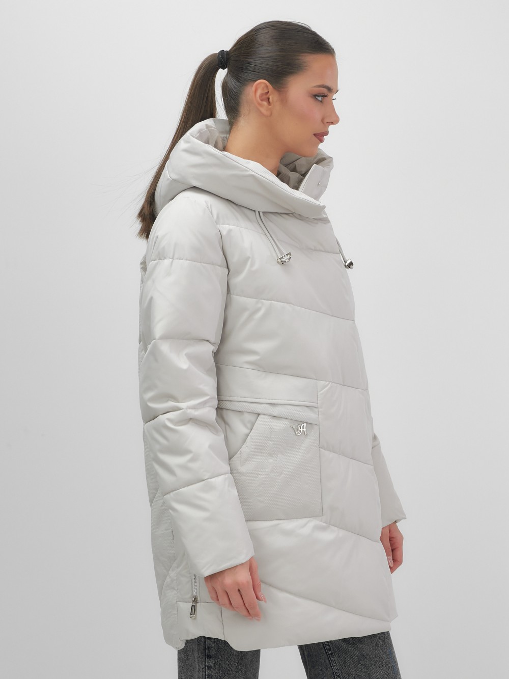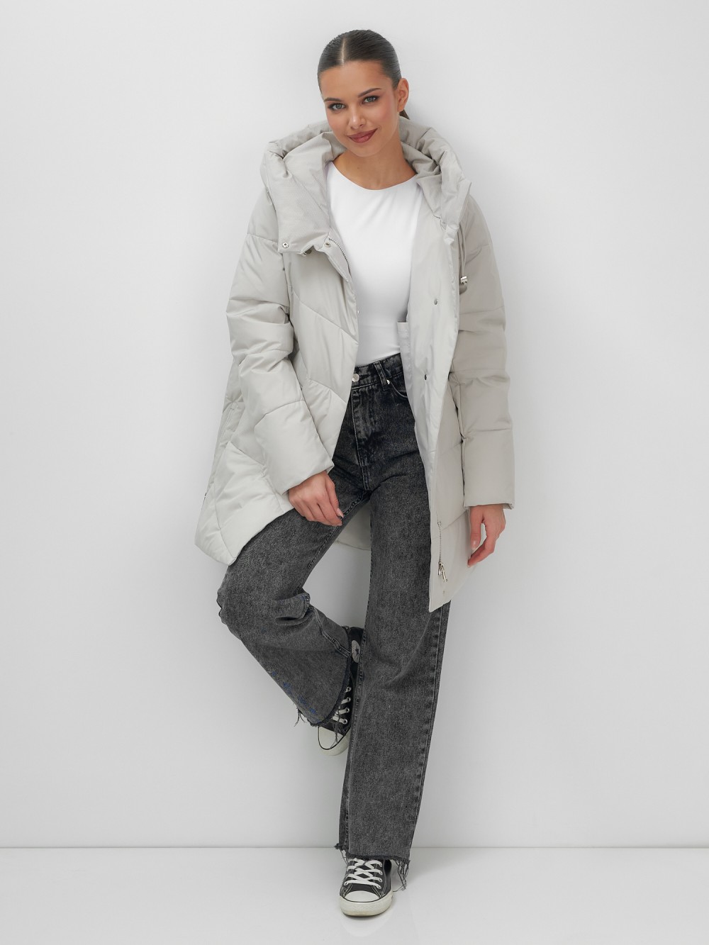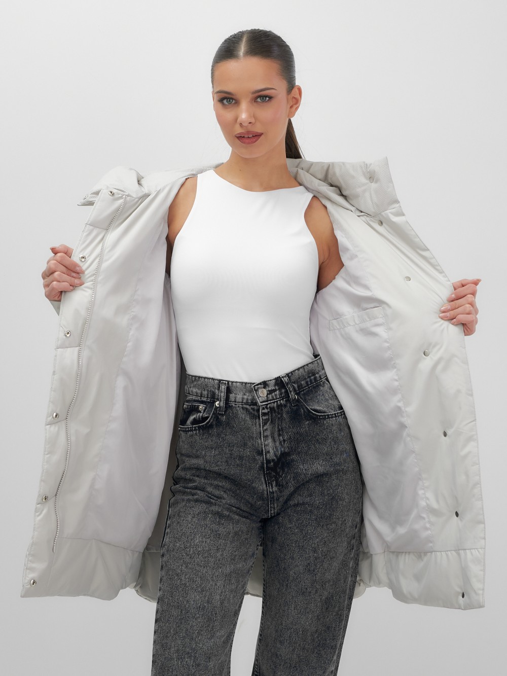 Куртка женская демисезонная с капюшоном серого цвета 1139Sr