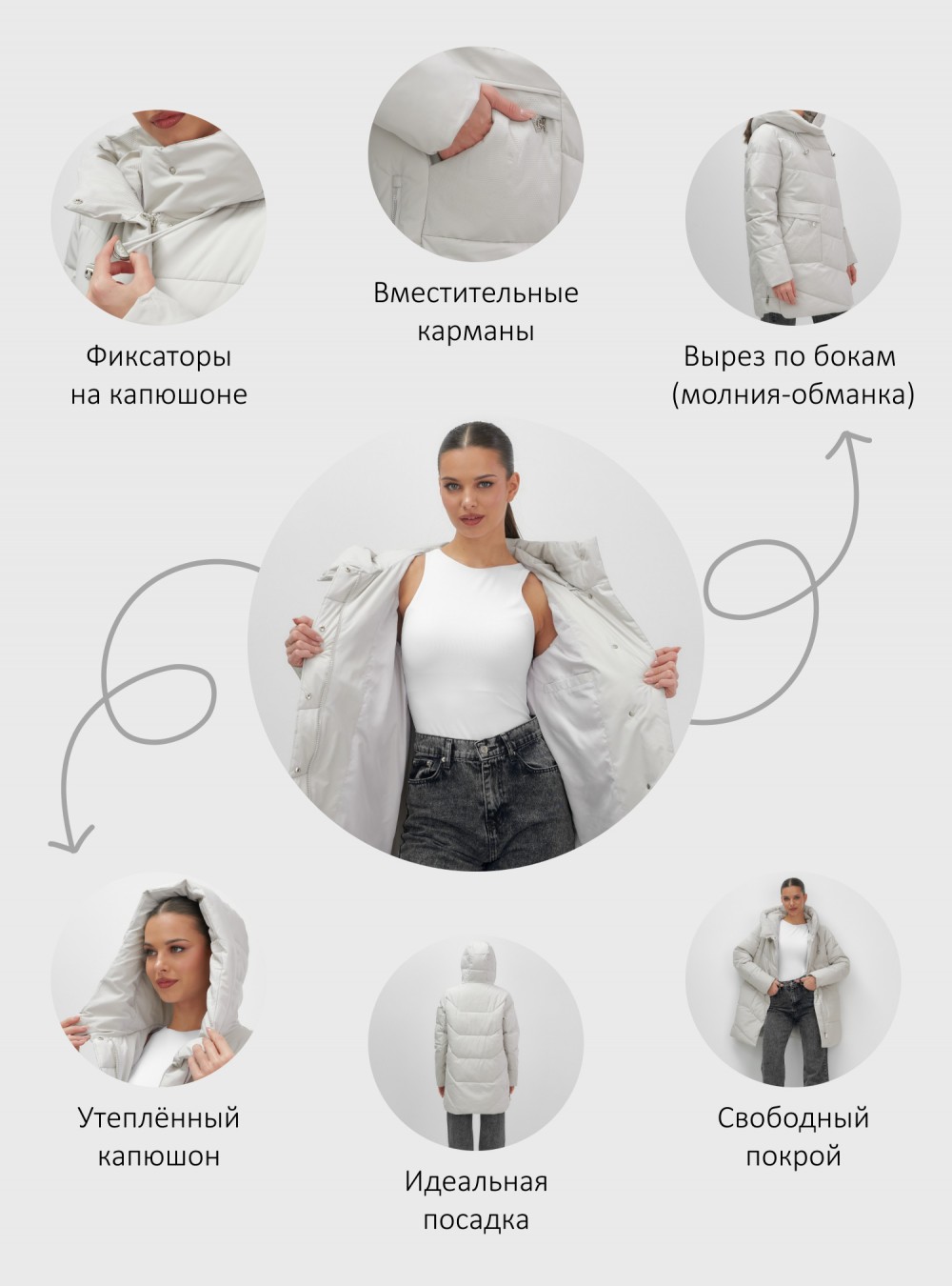 • Декоративные элементы: Капюшон, Карманы, Манжеты, Молния