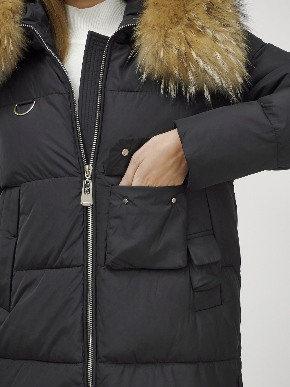 — Несъемный капюшон с натуральной съемной опушкой добавляет изысканности и защищает от непогоды. Мех енота добавляет шик и блеск вашему образу.