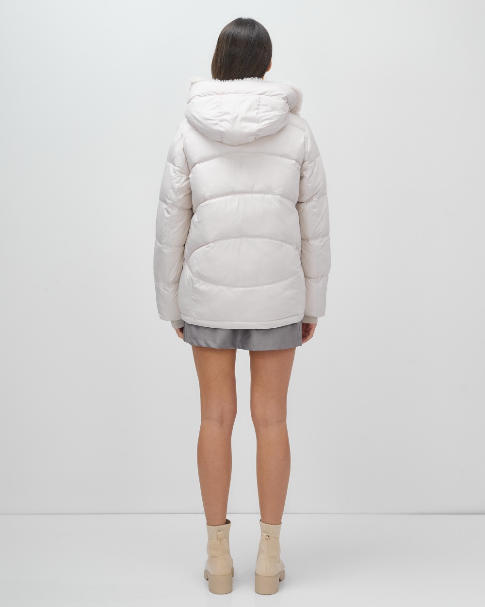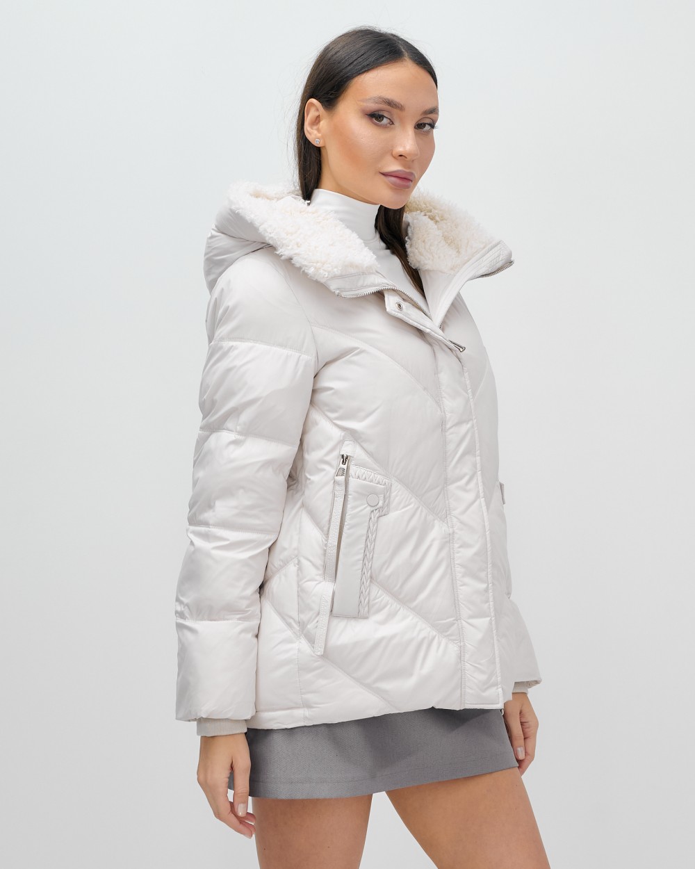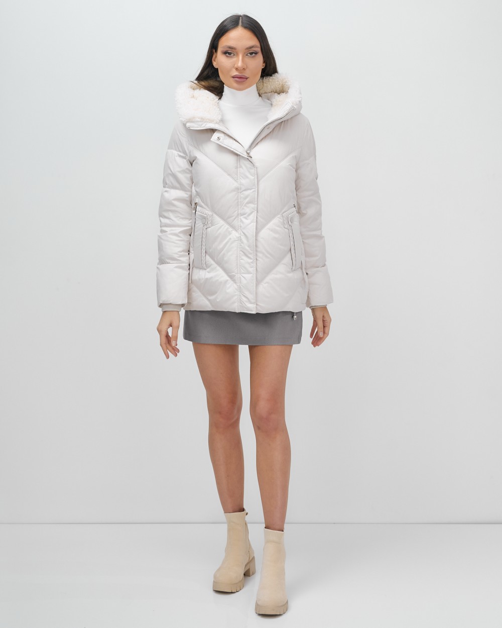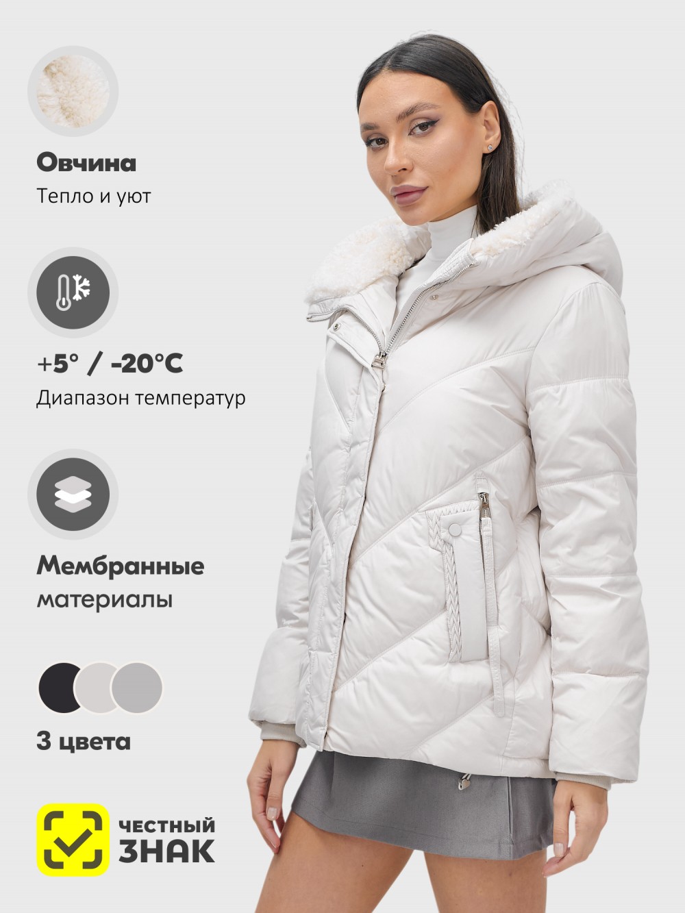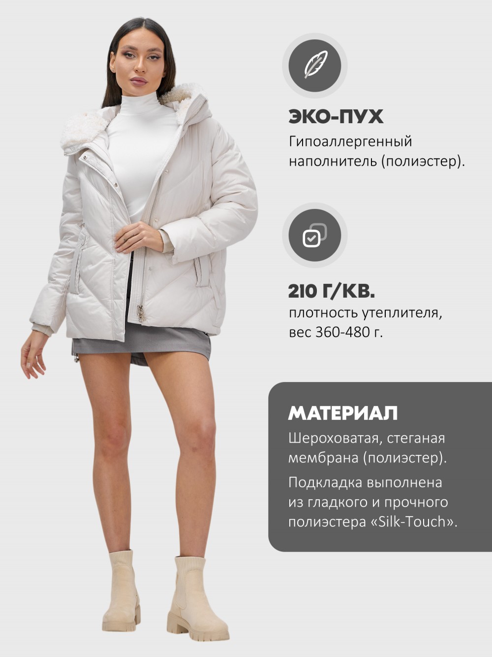 Особенность этой модели — несъёмный мех, который придаёт куртке изысканность и дополнительное тепло. Внутренняя подкладка из полиэстера и искусственной овчины не только согревает, но и дарит комфорт на весь день.