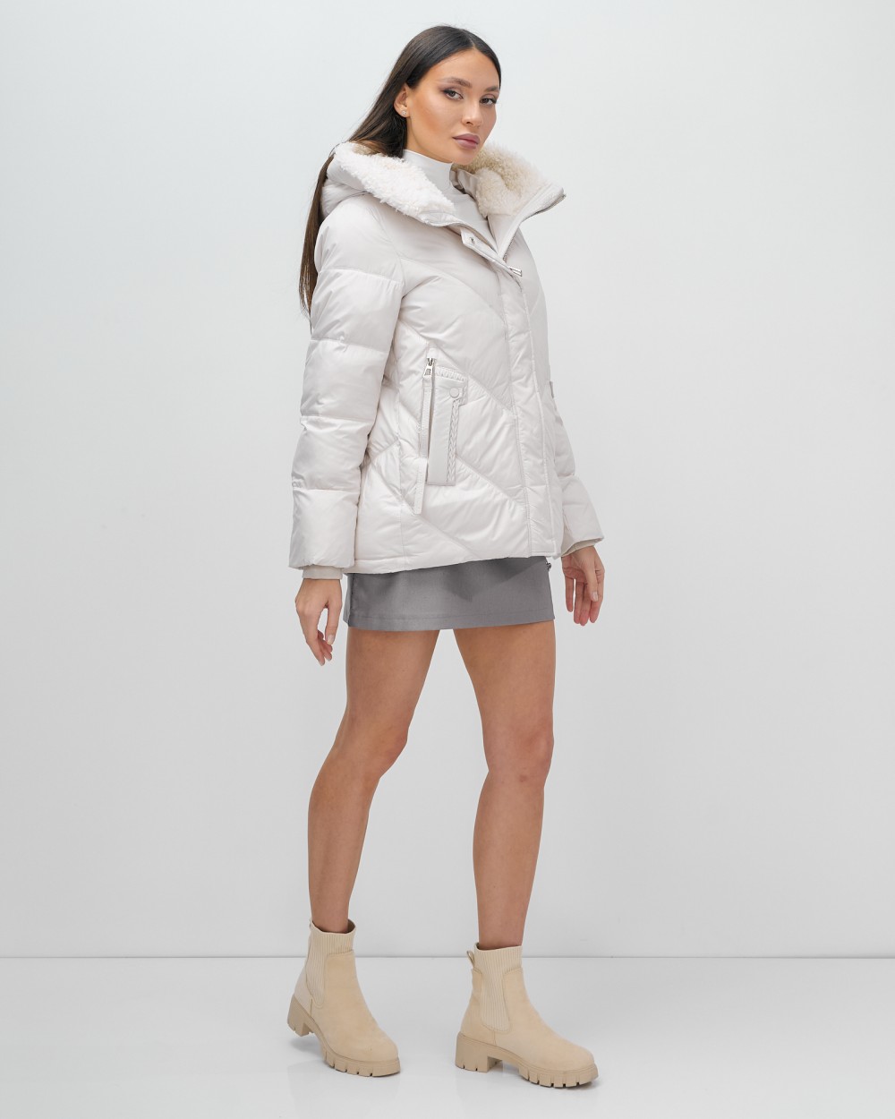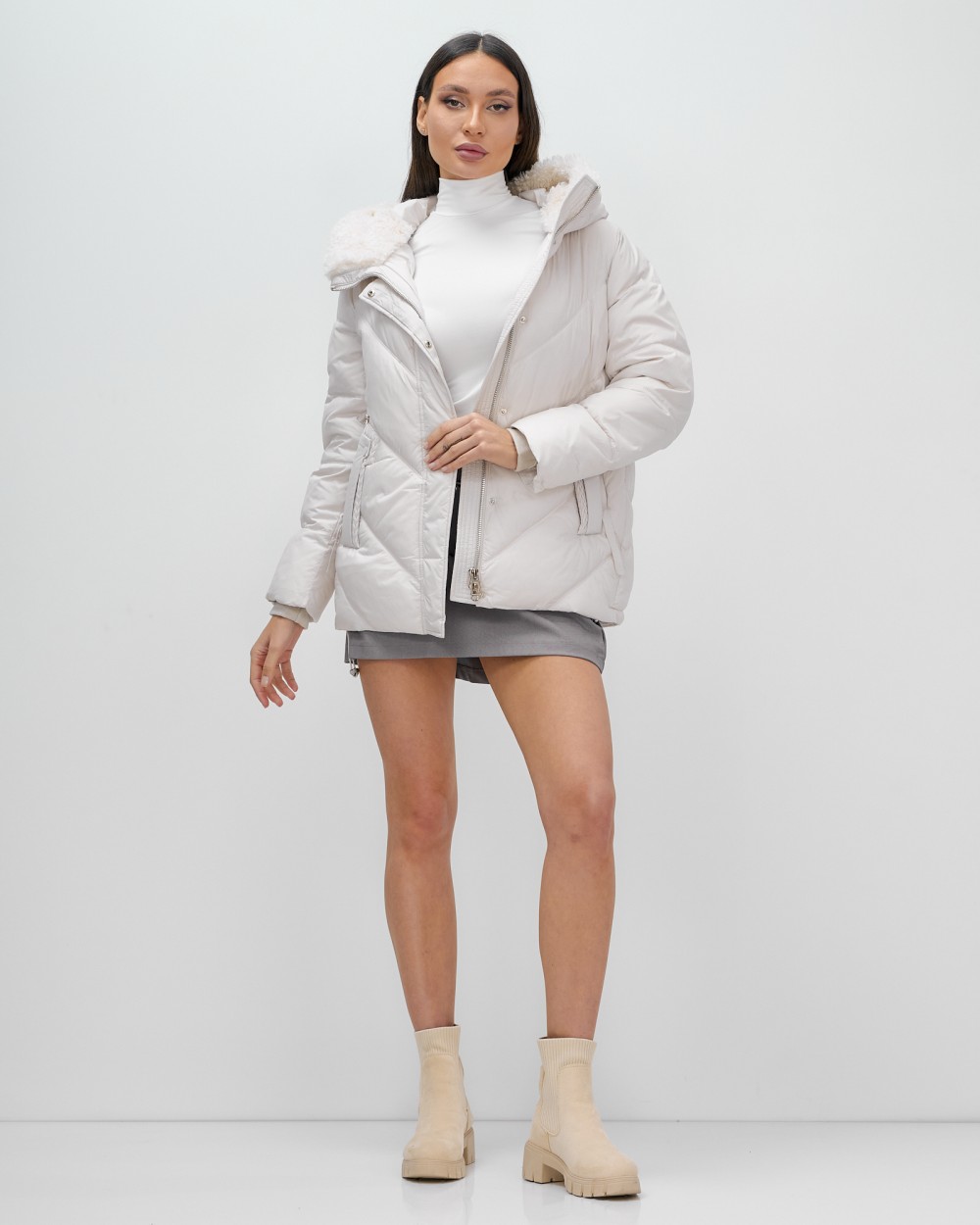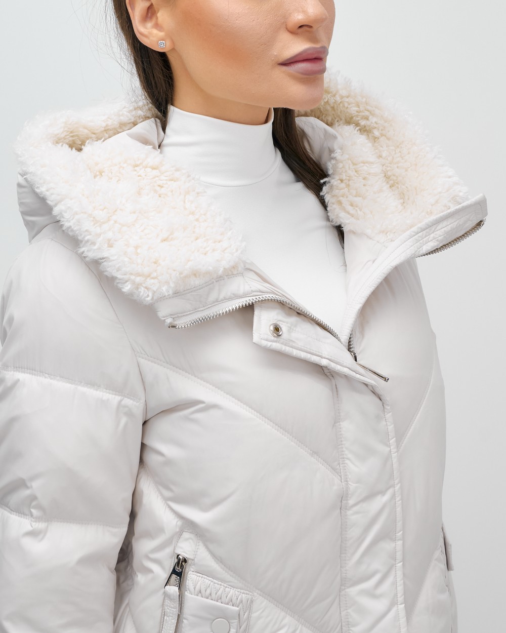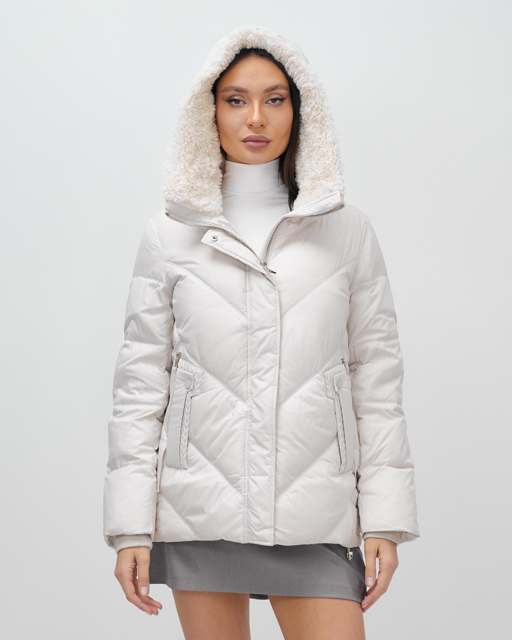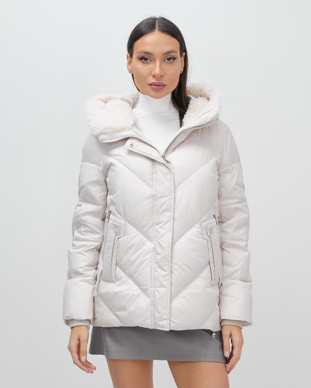 Куртка зимняя женская из овчина стильная и модная бежевого цвета 7348B