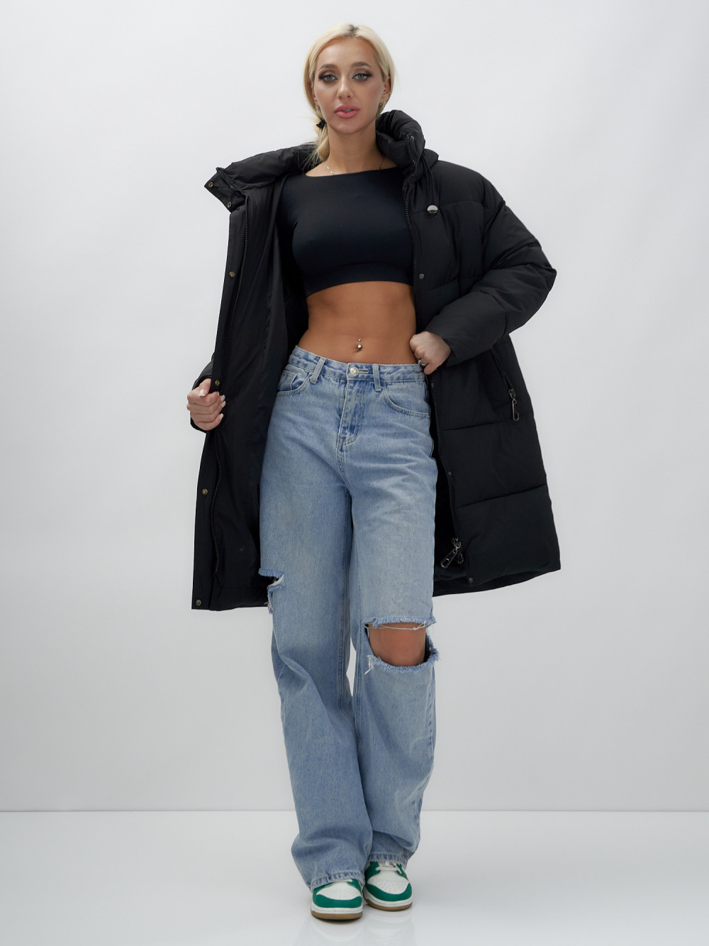 — Длина до колена: Обеспечивает дополнительное тепло и защиту, идеально подходит для зимних прогулок.