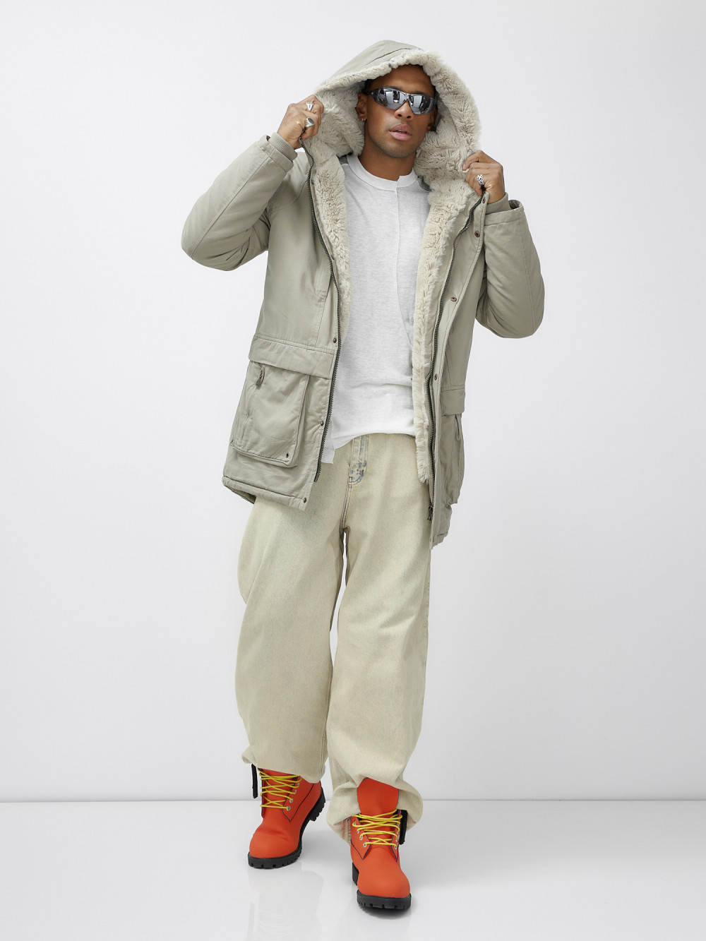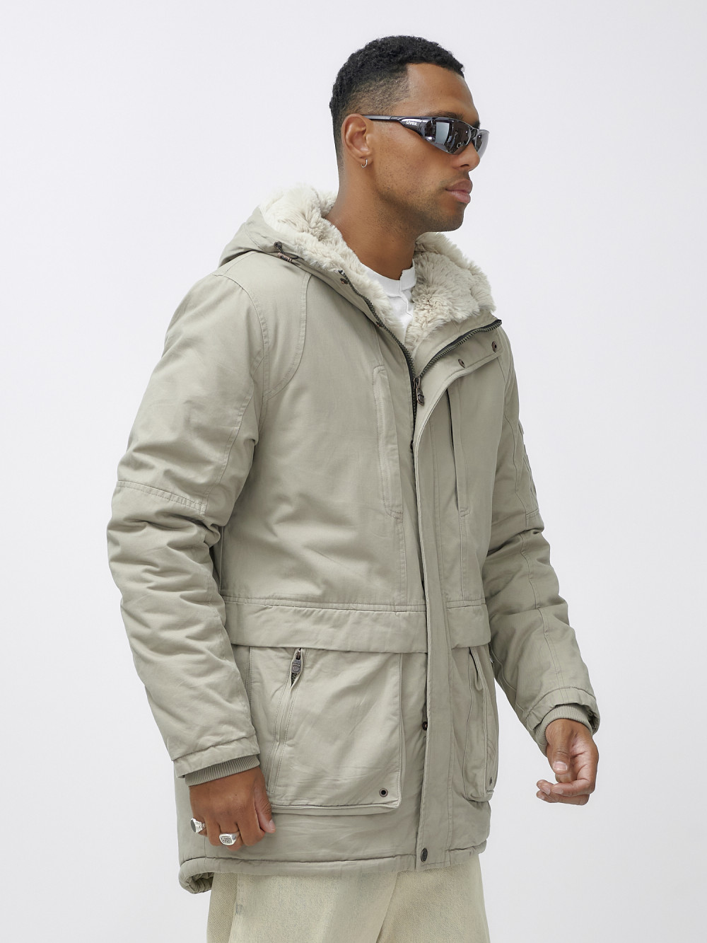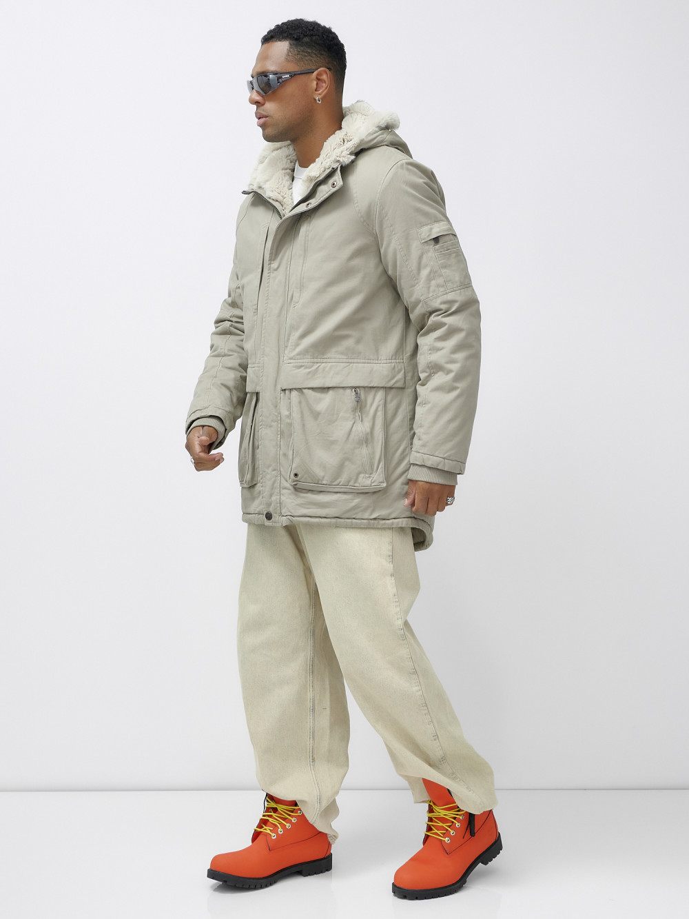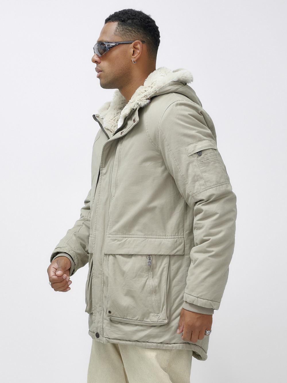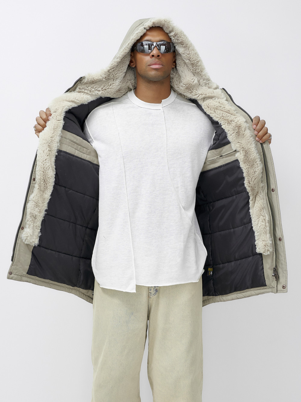 Парка мужская зимняя удлиненная с мехом бежевого цвета 2608B