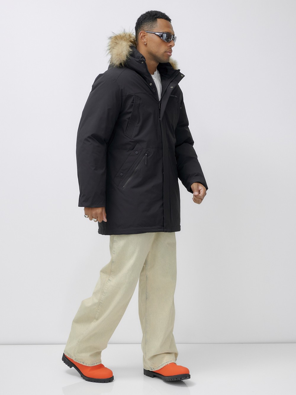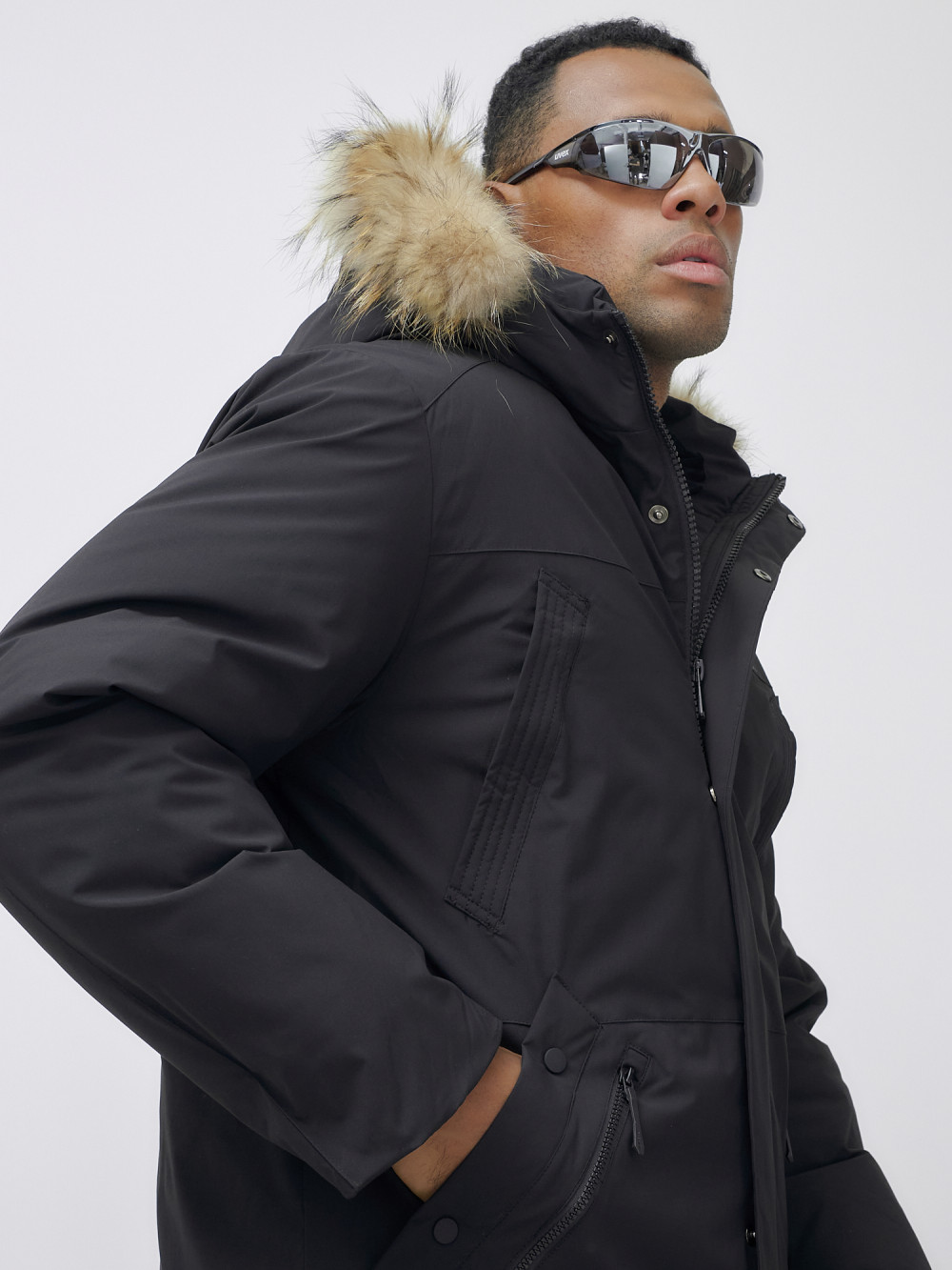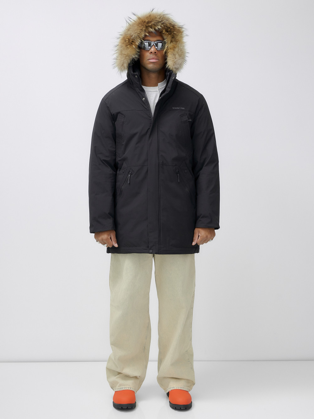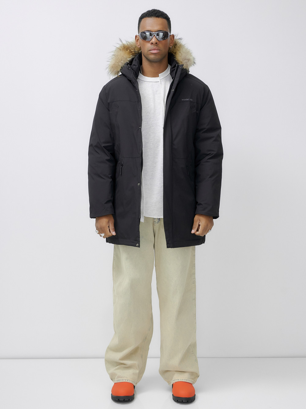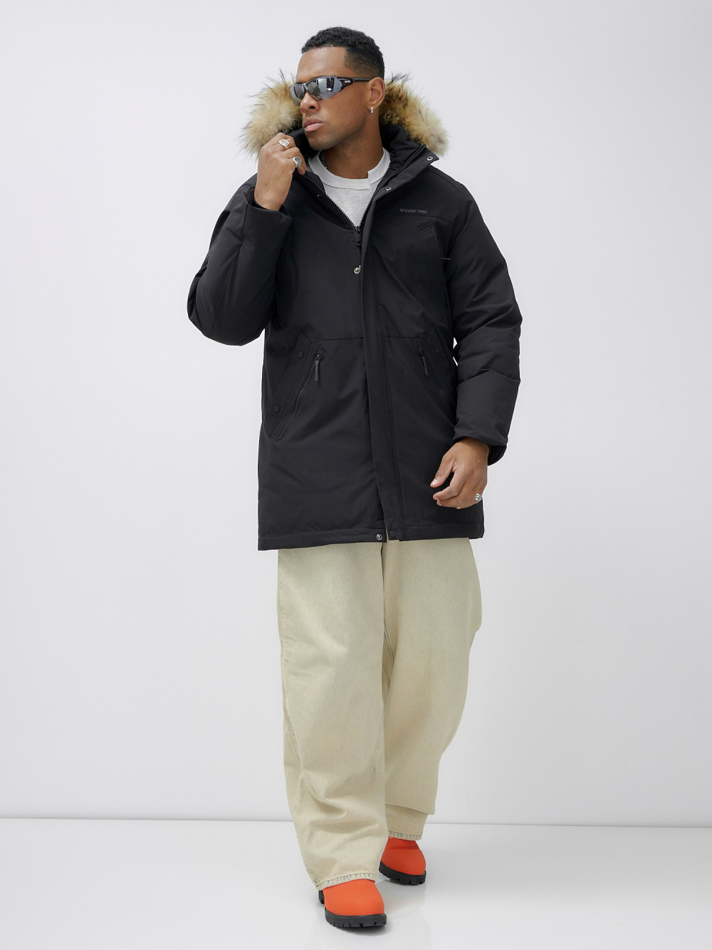 Парка мужская зимняя удлиненная с мехом черного цвета 999Ch