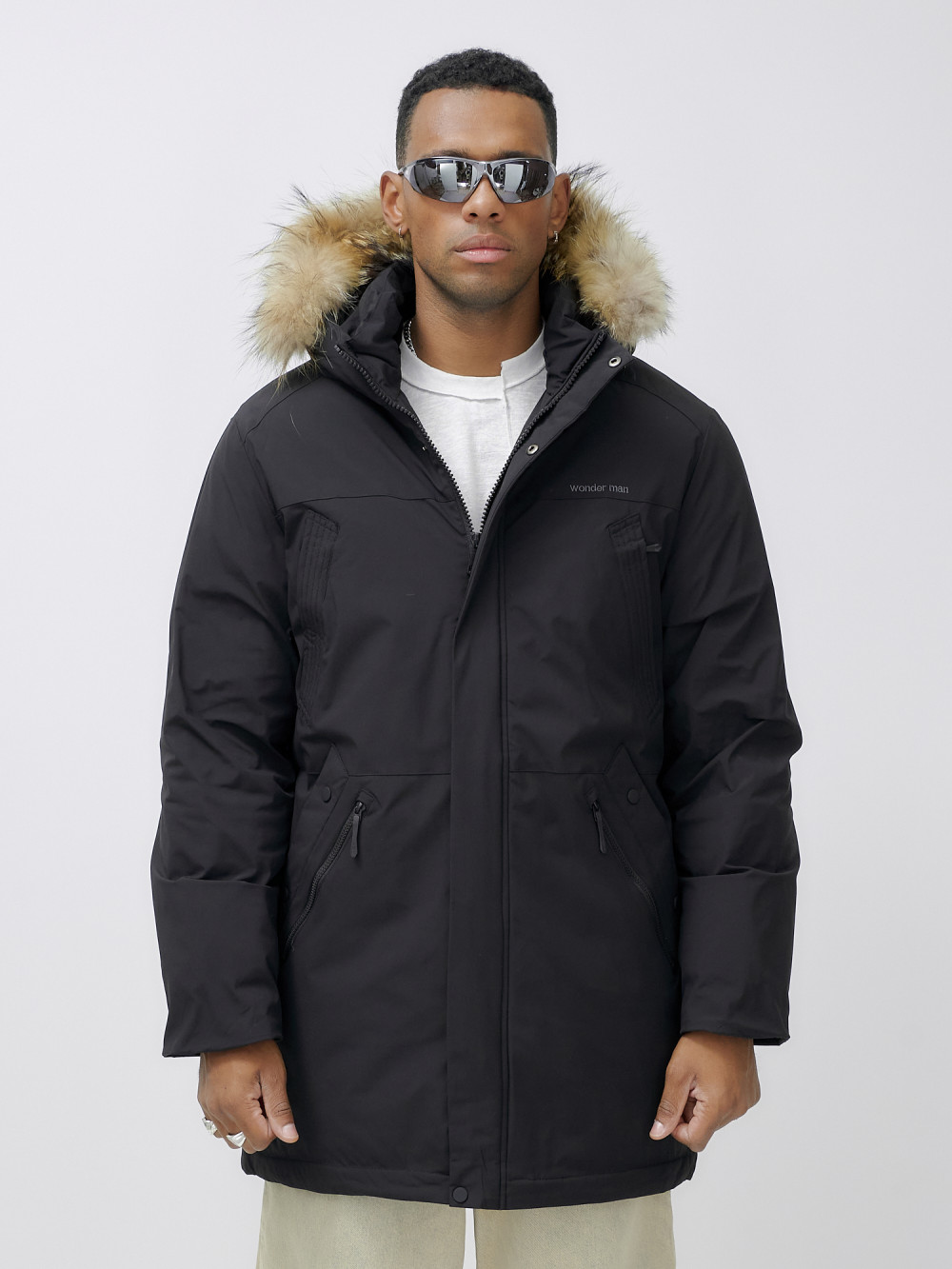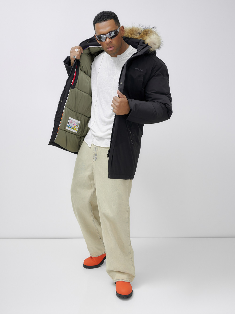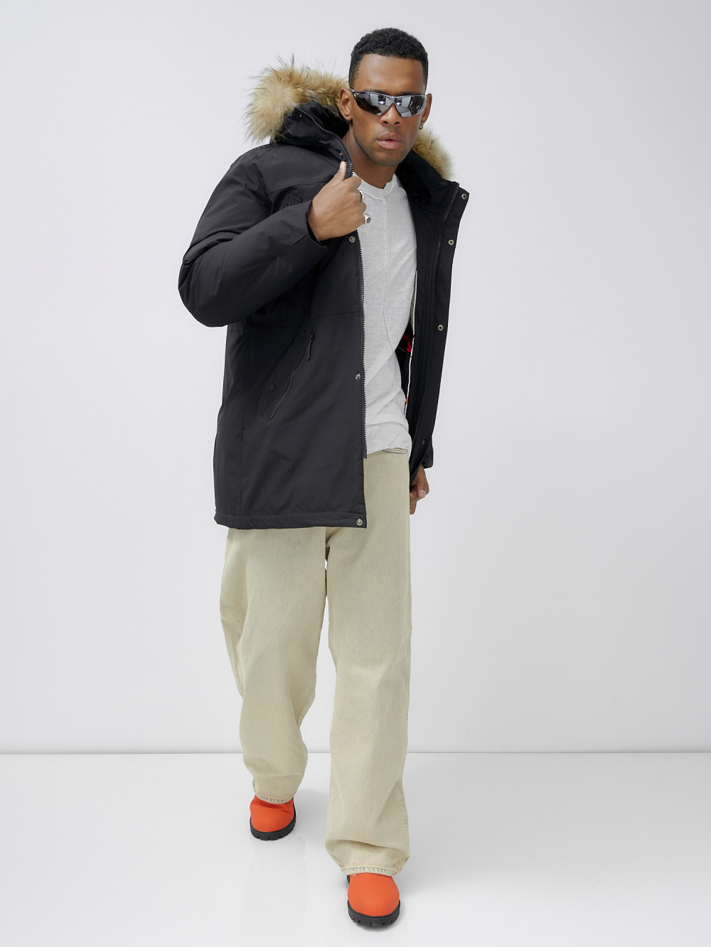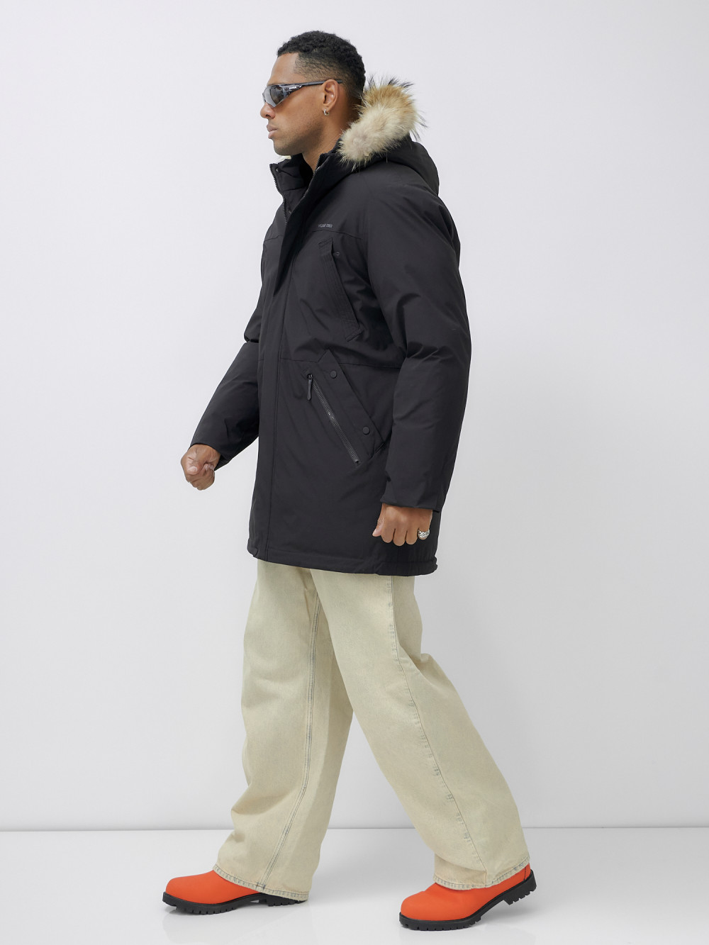 Парка мужская зимняя удлиненная с мехом черного цвета 999Ch