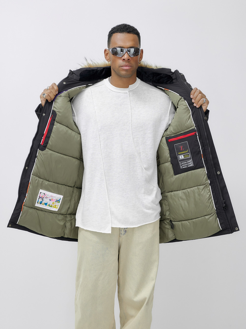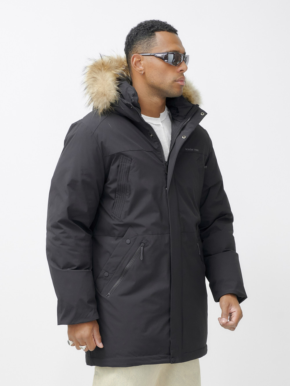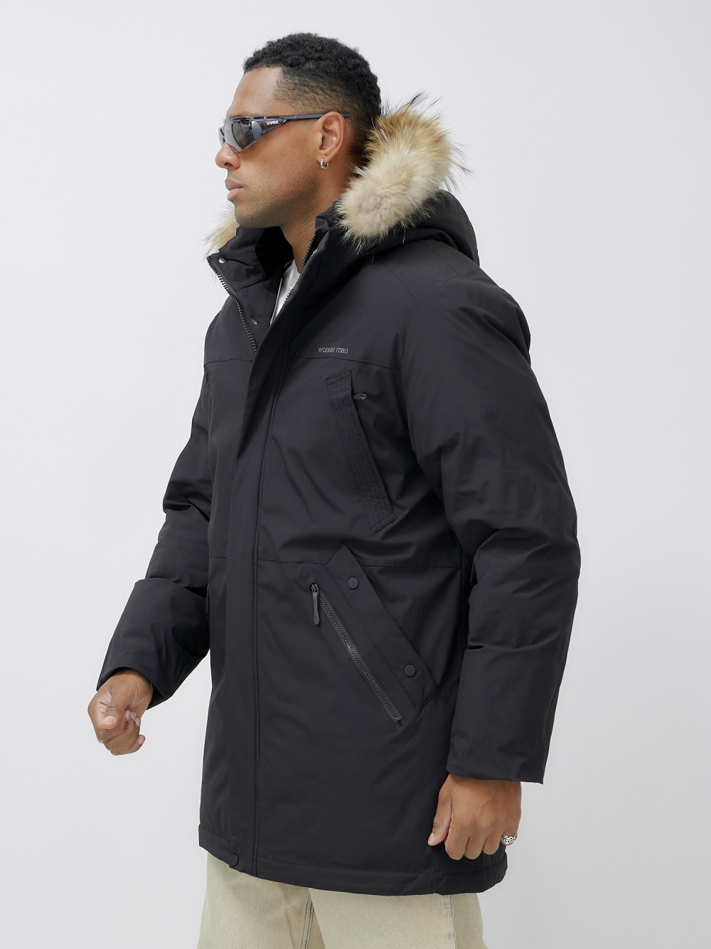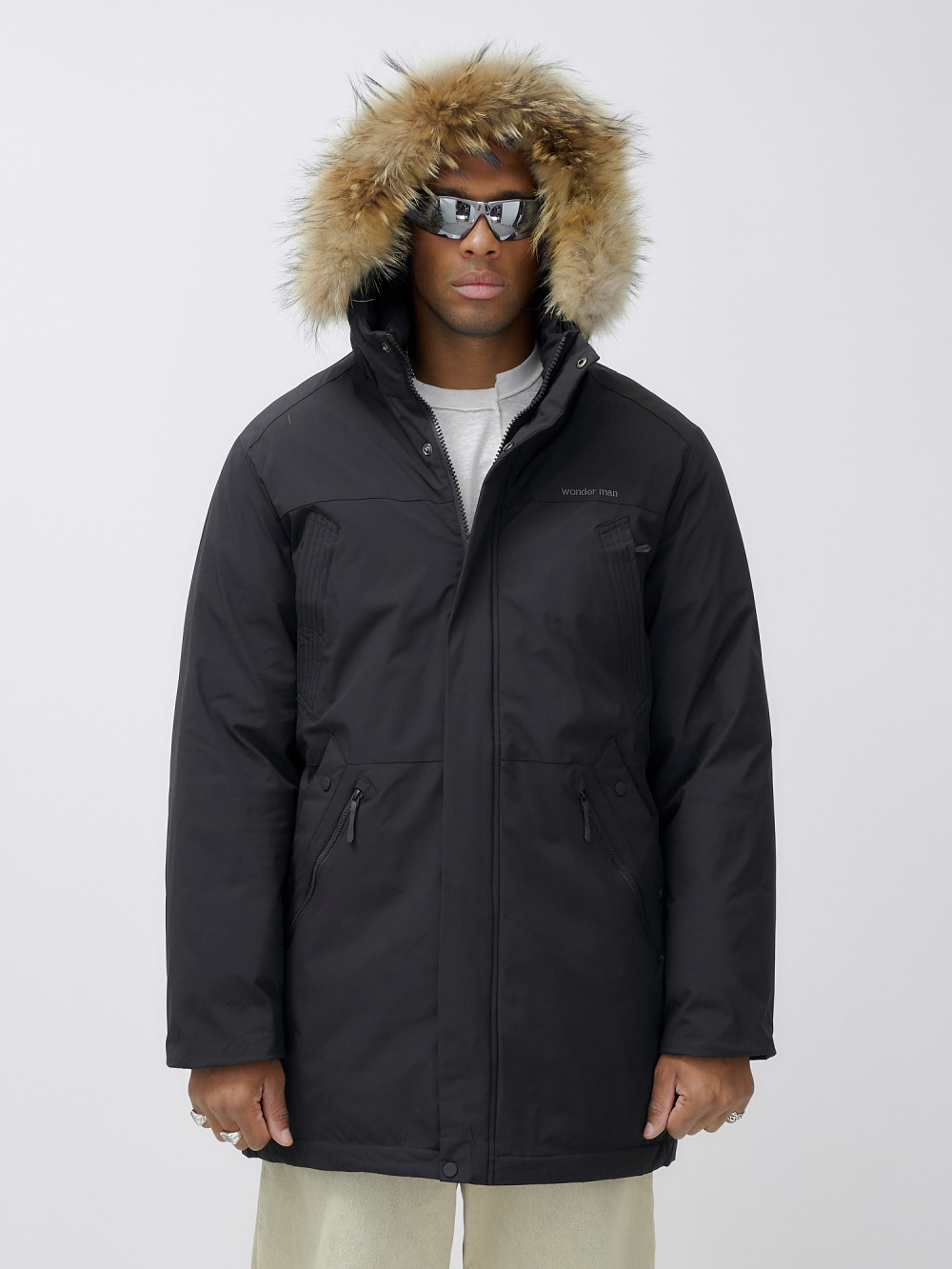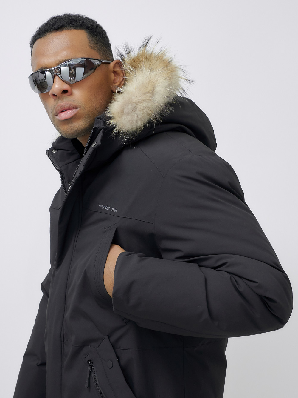 Парка мужская зимняя удлиненная с мехом черного цвета 999Ch