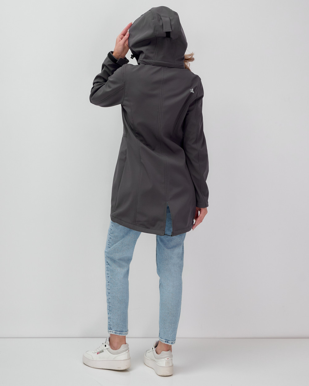 Съемный капюшон, длинные рукава с фиксаторами и прорезной карман на молнии с внутренними швами обеспечивают удобство и практичность. Светоотражающие элементы повышают безопасность на улице, а хлястик на капюшоне добавляет стиль и функциональность.