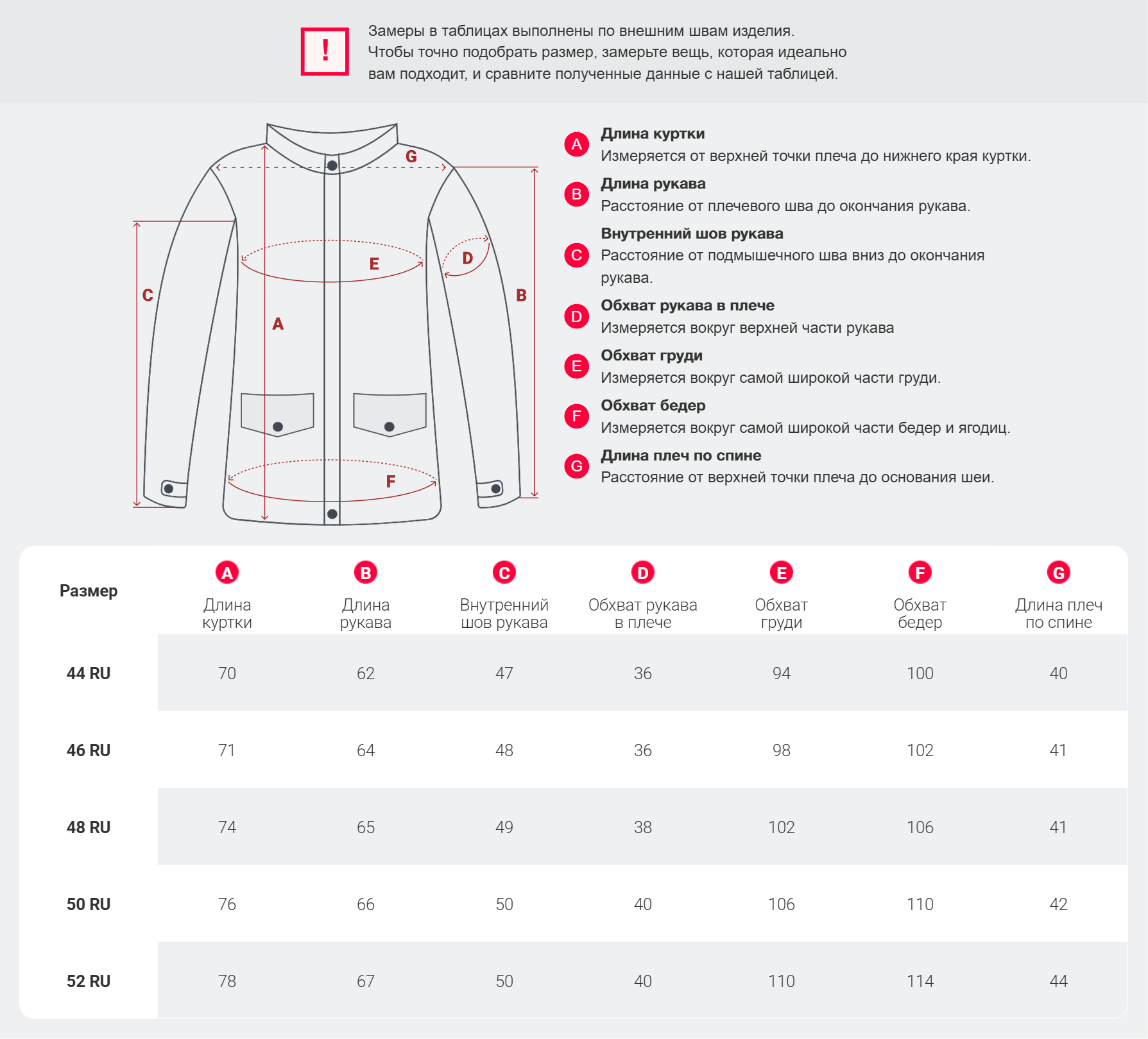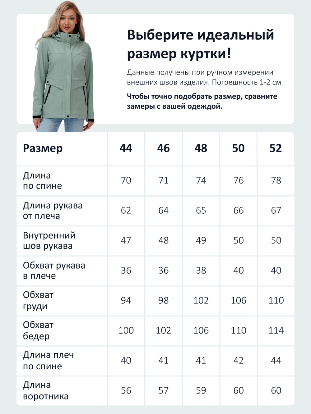 Длина куртки по спине7072747576