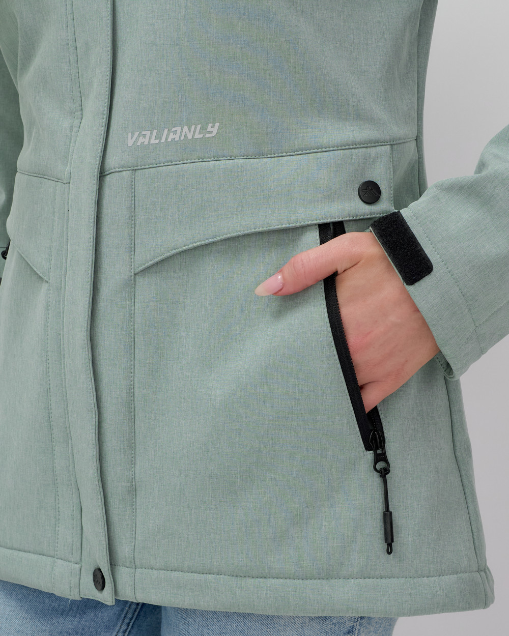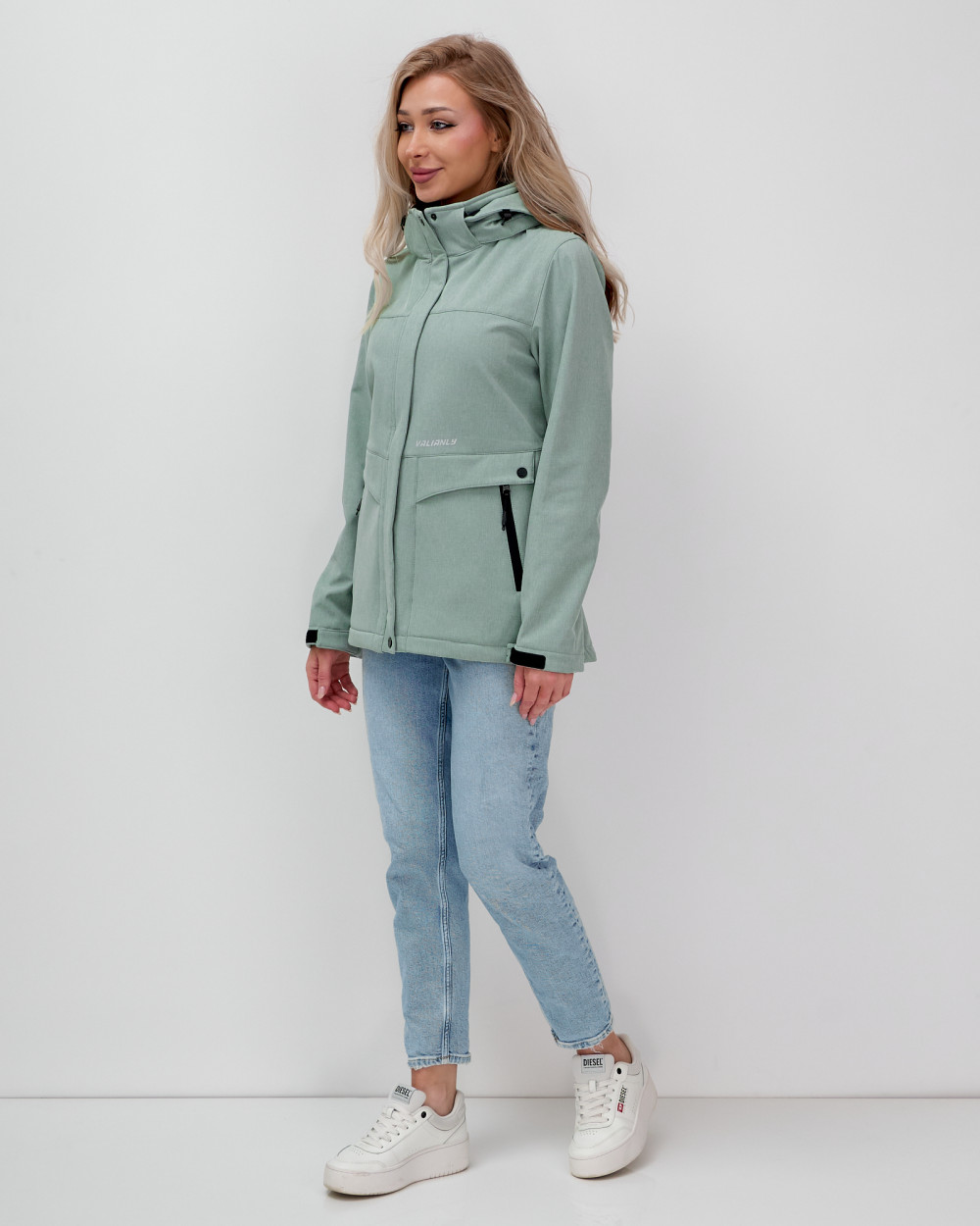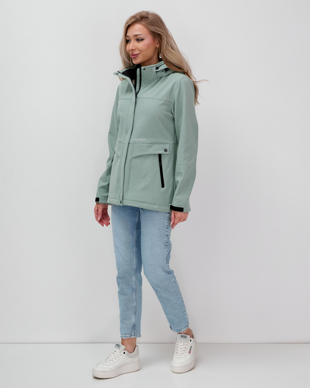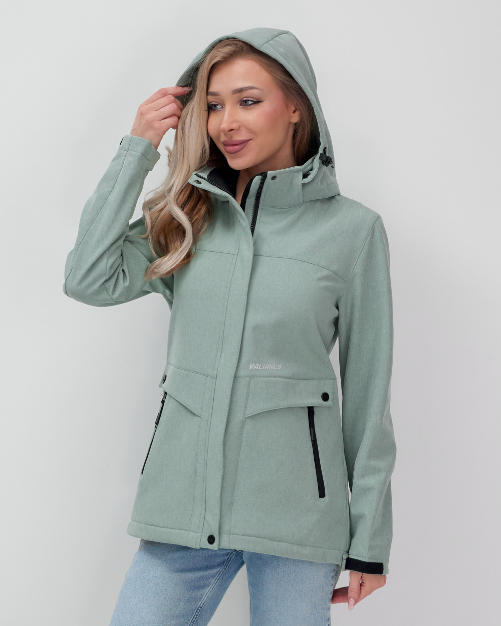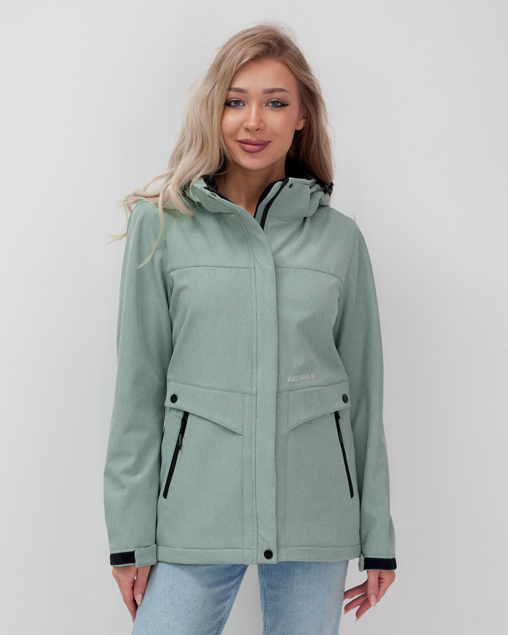 Эта женская ветровка является результатом коллаборации брендов MTFORCE и VALIANLY, объединяющих свои усилия для создания стильной и функциональной одежды.